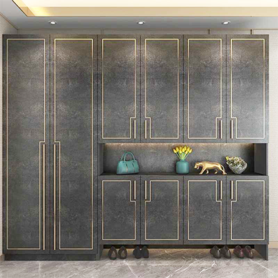 鞋柜如果過于高大,就會顯得相當(dāng)不協(xié)調(diào),進(jìn)門的時候容易產(chǎn)生高逼的感覺。當(dāng)然,如果能設(shè)計成嵌入墻內(nèi)的鞋柜,就會顯得自然美觀,也不占空間,也就沒有高度的限制了。